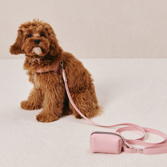Maltipoo World Leather Leash + Small Bag, Pink