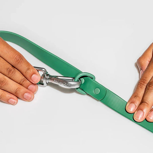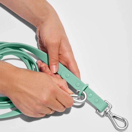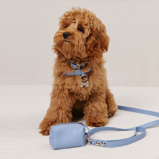 Maltipoo World Leather Leash + Small Bag, Light Blue