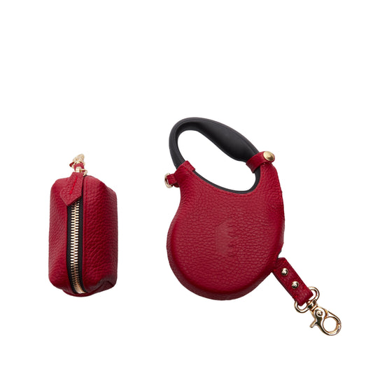 Maltipoo World Retractable Leash + Small Bag, Burgundy