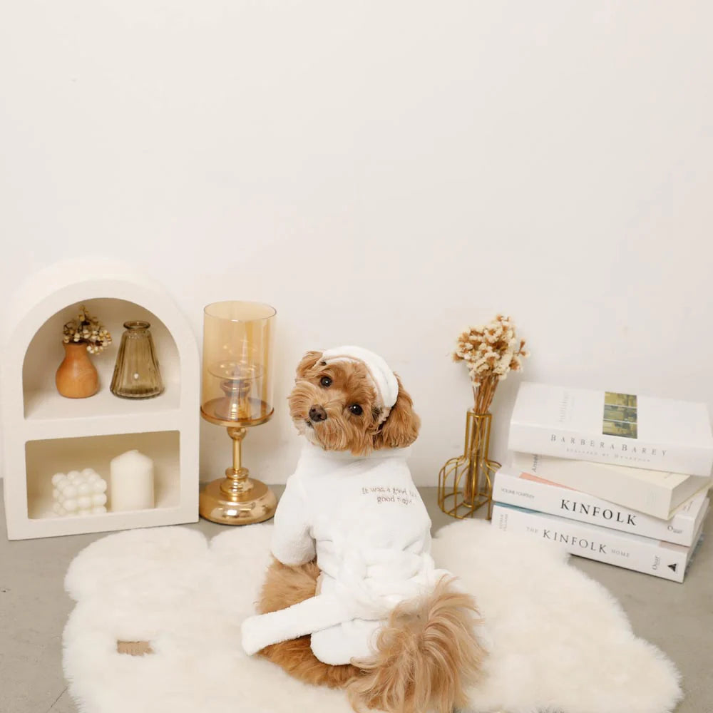 A luxurious and cozy bathrobe and eye mask set, perfect for pampering your pet after a bath or during relaxation time.