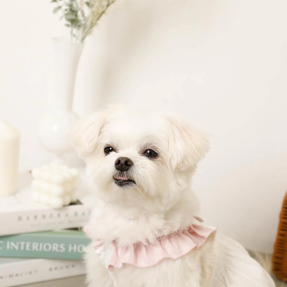 A playful summer dress with striped ruffles, dot-textured skirt, and cooling fabric treatment — perfect for keeping pups stylish and refreshed.