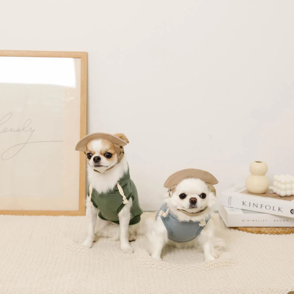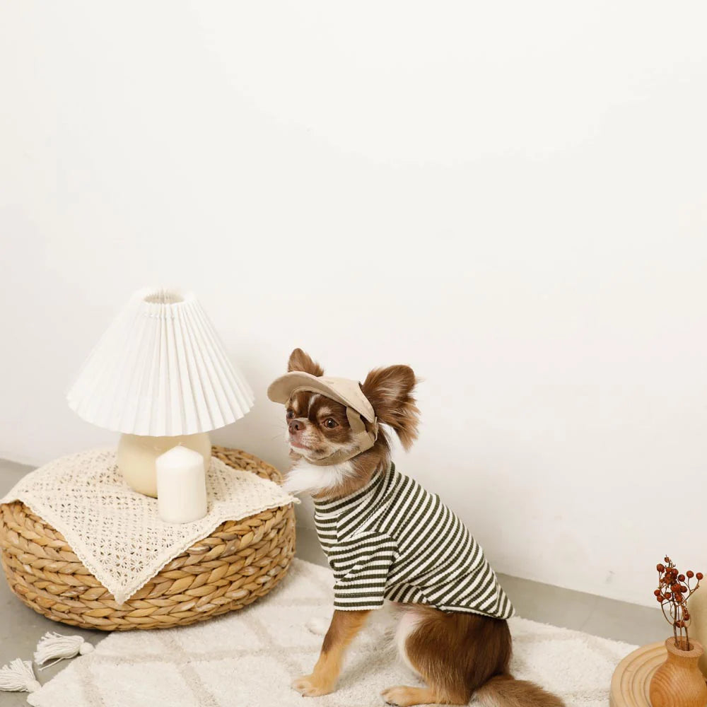 A stylish beige dog hat featuring Kuma-san bear embroidery — designed for sun protection and effortless coordination.