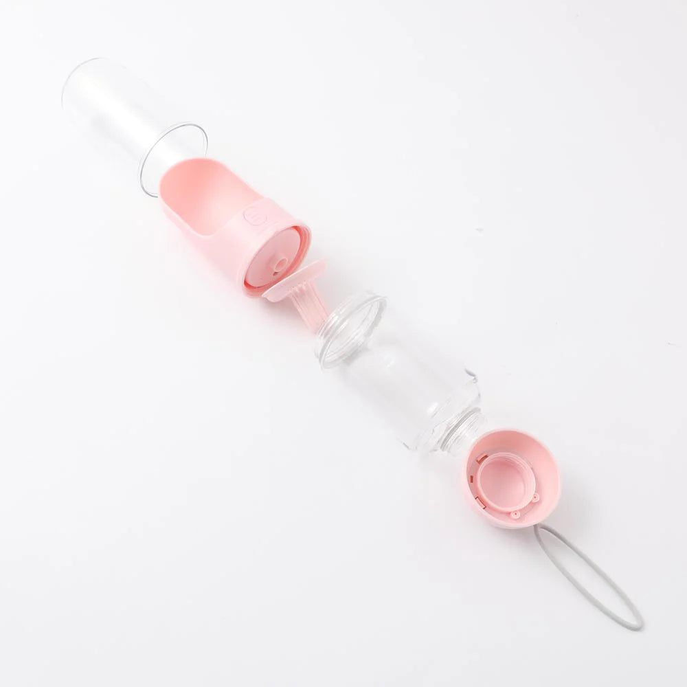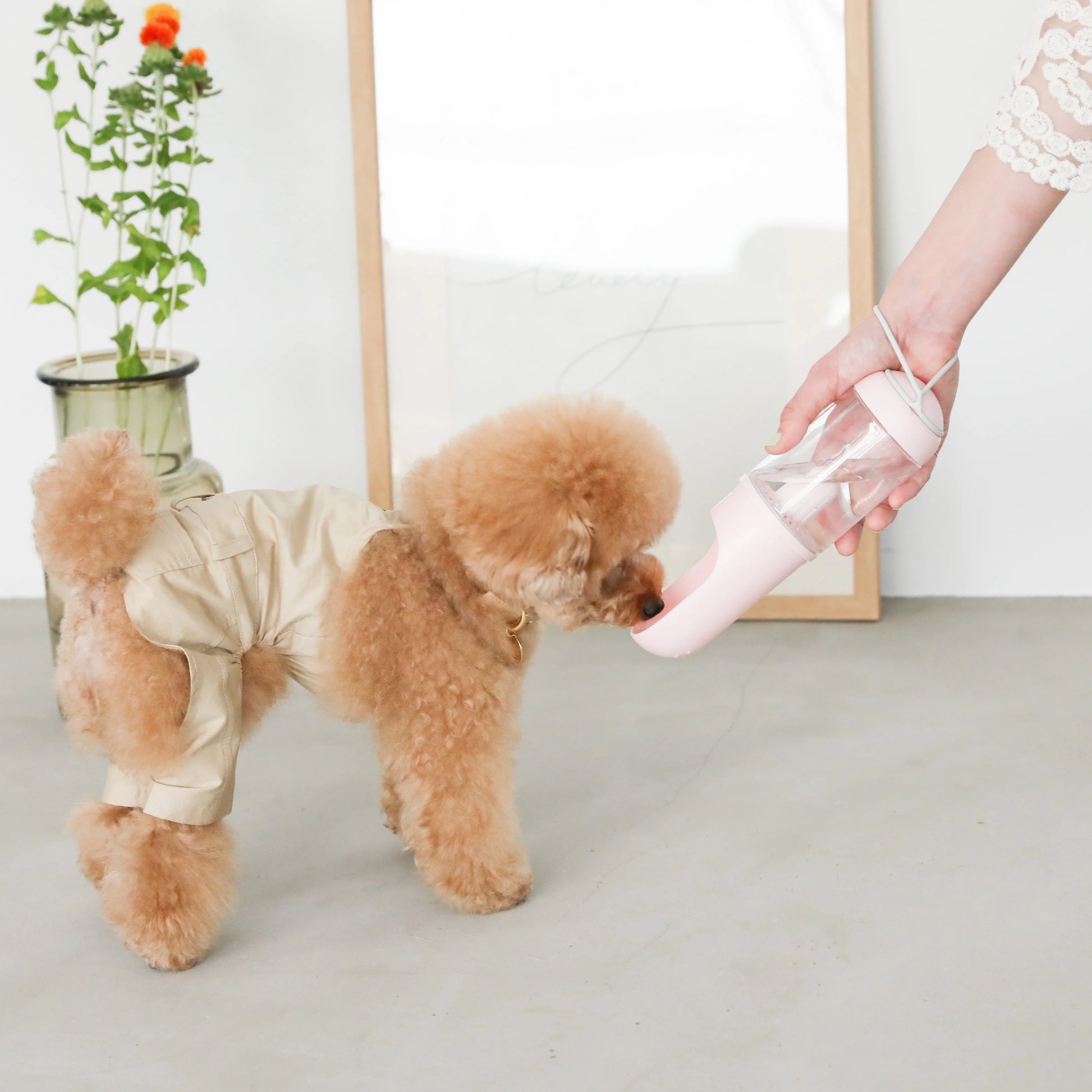 A convenient, leak-proof water bottle for pets, designed for easy carrying and hygienic hydration during walks and outings.