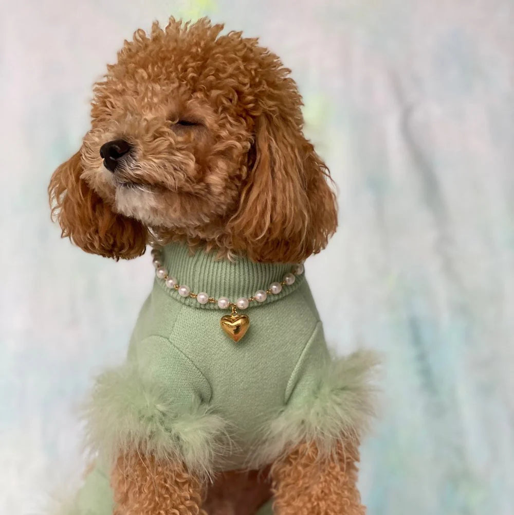 A luxurious pearl necklace with a heart-shaped Japanese water bell that adds a gentle, melodic charm to your pet’s every move.