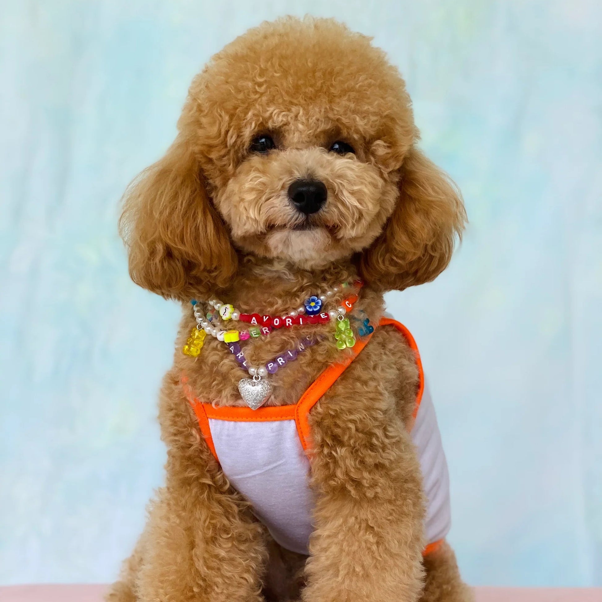 A playful pearl necklace with a gummy bear charm and colorful Kawaii beads — a statement of Tokyo street style for your fashionable fur baby.