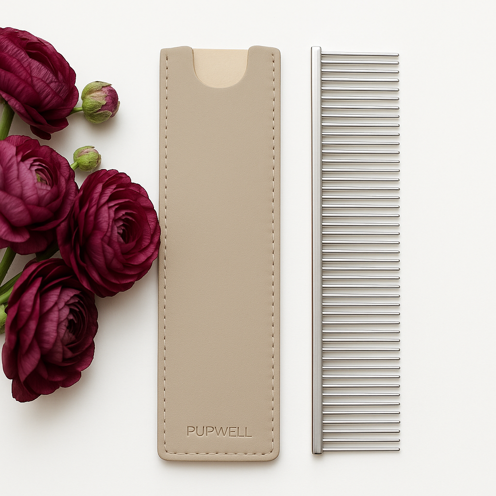 A versatile stainless steel comb designed for daily grooming, promoting a smooth and snag-free coat.